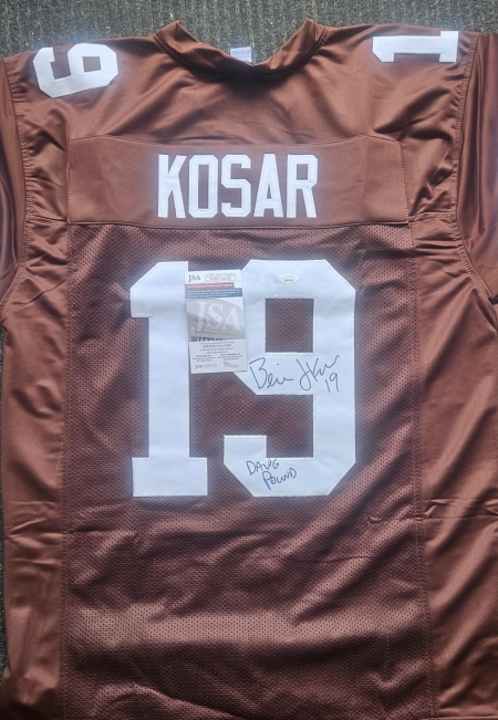 This SIGNED jersey of Bernie would make that die hard Browns fan very happy! Signed in black sharpie on this embroidered jersey. This jersey will come with a JSA certificate.