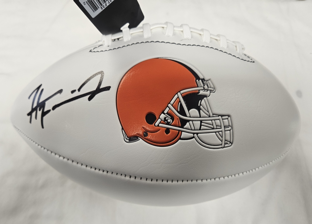 Harold signed this logo football with a black sharpie. This football will come with a Beckett certificate.