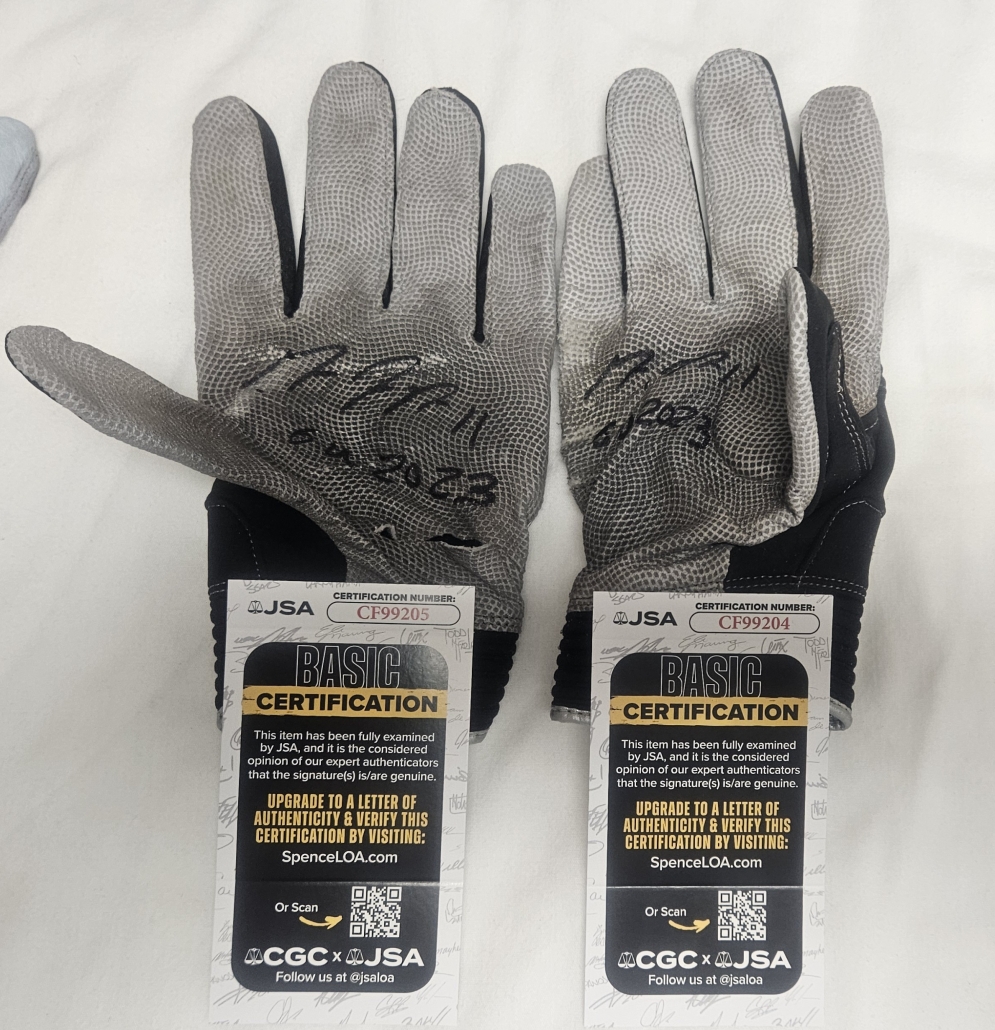 These game used gloves are signed.EACH glove will come with a JSA certificate.